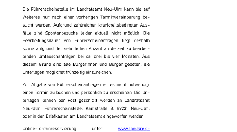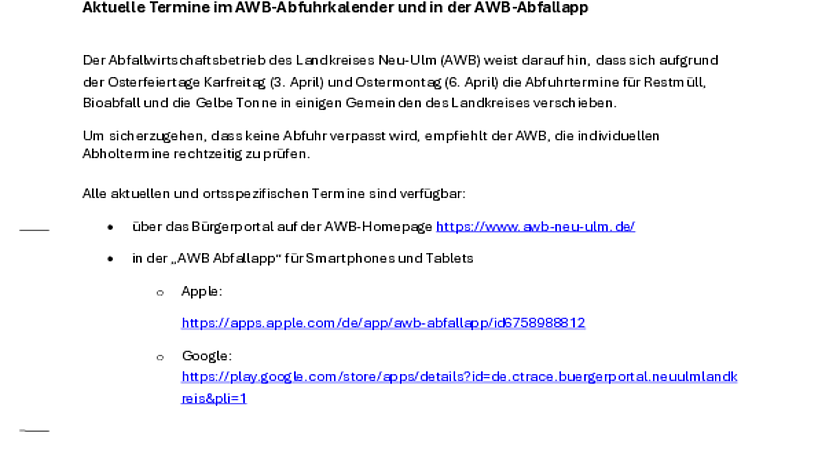 Die Wertstoffhöfe des Abfallwirtschaftsbetriebs des Landkreises Neu-Ulm sowie die Grüngut- Sammelstellen ändern ab der kommenden Woche ihre…